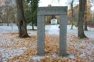 Kävelysää oli tänään harmaa, mutta lempeän kostea ja miellyttävä. Kuljin keskustan poikki, puotitihentymää väistäen, kohti Kuokkalaa. Mietin, poikkeaisinko Kuokkalan sillan alla keinuvaa taideteosta katsomassa, mutta ennen siltaa oikealla puolella alas johtavat portaat on puomitettu. "Ei talvikunnossapitoa". Sillan toisella puolella katsoin, kun kävelijäryhmät tallustivat ylös serpentiininä portaat kiertävää sileää asvalttia. Ne suoraan kulkevat portaat kun oli...puomitettu. "Ei talvikunnossapitoa". Tuntuu älyttömältä, että tämän pidentyneen syksyn / lumettoman ja leudon alkutalven aikana kävelyväyliä on jo suljettu siksi, että kun pakkasta tai lunta vihdoin tulee, kaupunki ei olisi korvausvelvollinen, jos jotain sattuu. Sen ainakin oletan syyksi. Kuokkalan keskustassa suuntasin synkän oloista tumman harmaata (keskeneräistä) kivimonumenttia, tulevaa Kuokkalan kirkkoa kohti. Rakennus muistuttaa muodoltaan vanhaa kirkkorakennusta, mutta luo jopa uhkaavan vaikutelma...