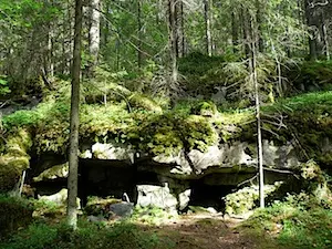 Voin kuvitella, miten hienot sienestys- ja marjastusmaastot näissä nyt tunnelmallisen vehreissä metsissä on loppukesästä. Viereinen kaupunki ja liikenteen äänet unohtuvat, kun äänimaisema on luonnon hallussa. Sen huomaa hyvin pysähtyessään vaikkapa lukemaan jotain reitin 17:stä opastaulusta; ininä korvan juuressa voimistuu heti ja paljaasta ihonkaistaleesta riemastuneet hyttyset iskevät saman tien kimppuun.