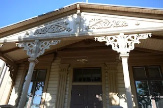 Fria Kristliga Folkhögskolanin sisäänkäynnin ja kuistin koristeleikkaukset ovat todella näyttäviä. Toivottavasti kuistin jo hieman lahonneet kaidepuut ehditään pian korjata... Ortodoksikirkon puistossa leijuu jo alkuillan raukeus. Muutama poika potkii palloa, tytöt treenaavat vaakaheittojen avulla baseball-lyöntejä.