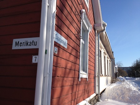 Käymme kääntymässä Hollihaan puistoalueella, missä paksu lumikerros peittää lasten liikennepuiston. Paluumatkalla kohti keskustaa pitkin Maunonkatua huomaan suurisiipisen keltaisen pöllön, joka vilkuttaa vajamaisen rakennuksen vihreistä, munakuvioilla koristelluista seinistä.