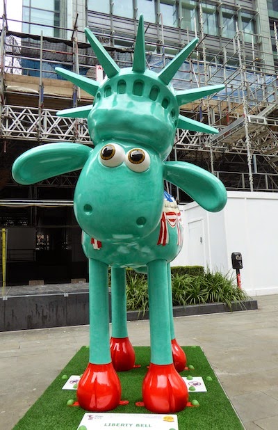 Cornhill-kadun kautta saavuimme Royal Exchangelle, jossa oli kaksi tiukasti paikallaan pysyttelevää nelijalkaista. Ensimmäisenä Tim Sutcliffen designaama Robo-Shaun ja toisena ensimmäisen Wellingtonin herttuan ratsastajapatsaan ratsuhevonen. Robo-Shaun vei näistä kahdesta ylivoimaisen voiton. Tässä oli Aardman-studioiden henkeä - ihan kuin Wallacen nikkaroima. Kuten Techno-Trousers. Ne väärät housut.