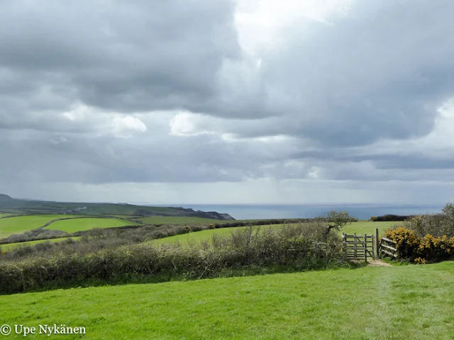 Bude oli tosi kivan oloinen paikka, mutta eteenpäin! Edessä oleva South West Coast Pathin reittipätkä Crackington Haveniin oli kuvaukseltaan "easy then strenuous", kilometrejä 16,4 ja nousua yhteensä 760 metriä. Ihan siedettävästi.