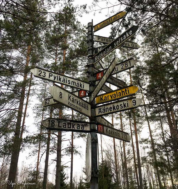 Reitin loppua kohden merkinnät olivat paikoin harvemmassa ja olisin kaivannut opasta kertomaan Keittokiven salaisuuden, mutta sitten löysin itseni taas tien 69 laidasta: ympyräreitti oli lähellä loppuaan. Metsätöiden jäljiltä polun pohja oli taasen hieman hukassa, mutta onnistuin arvaamaan oikean suunnan ja selvitin pian reitin takaisin autolle ja lähtöpaikkaan.